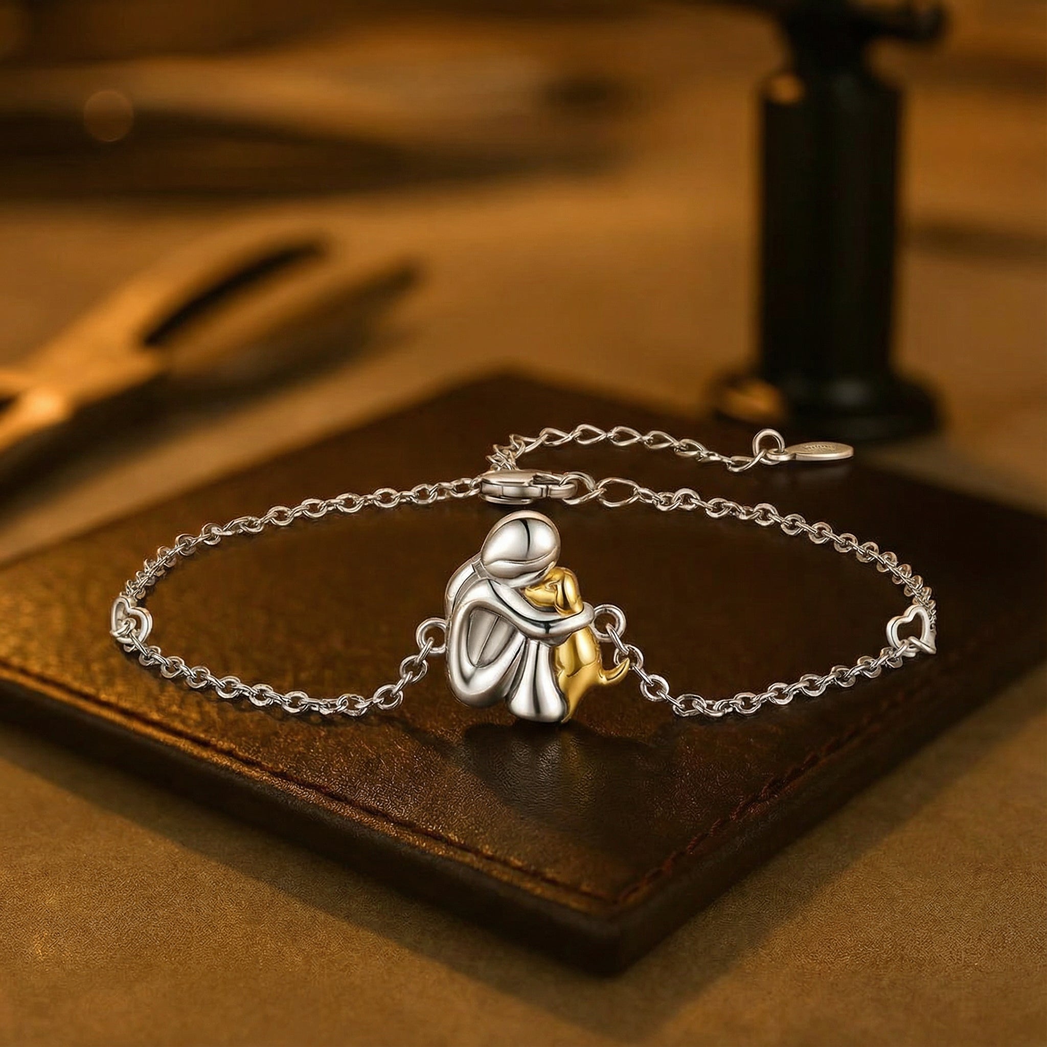 This delicate bracelet is a gentle reminder of the love that will never leave you. The small design of a woman and her dog captures warmth, loyalty, and a quiet connection. Light and comfortable, it can be worn on the wrist or ankle — adding a soft touch of meaning to each day.