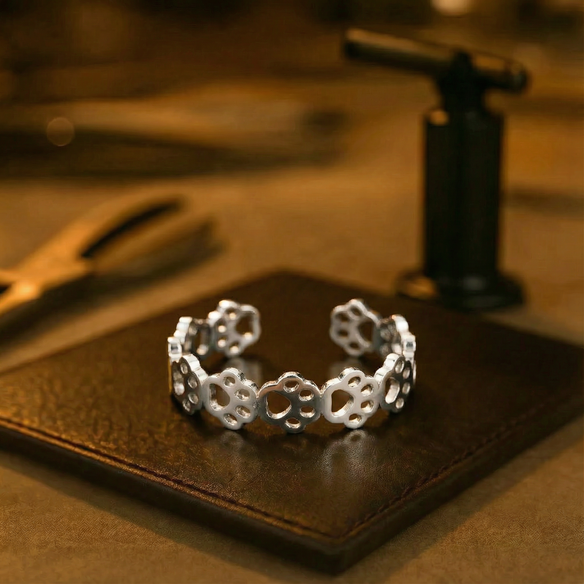 Paw-Shaped Stainless Steel Ring – Adjustable Animal Motif Ring for Women